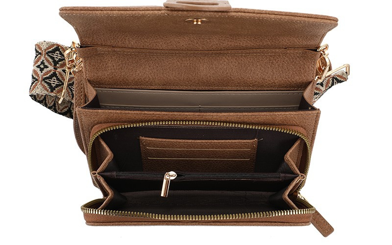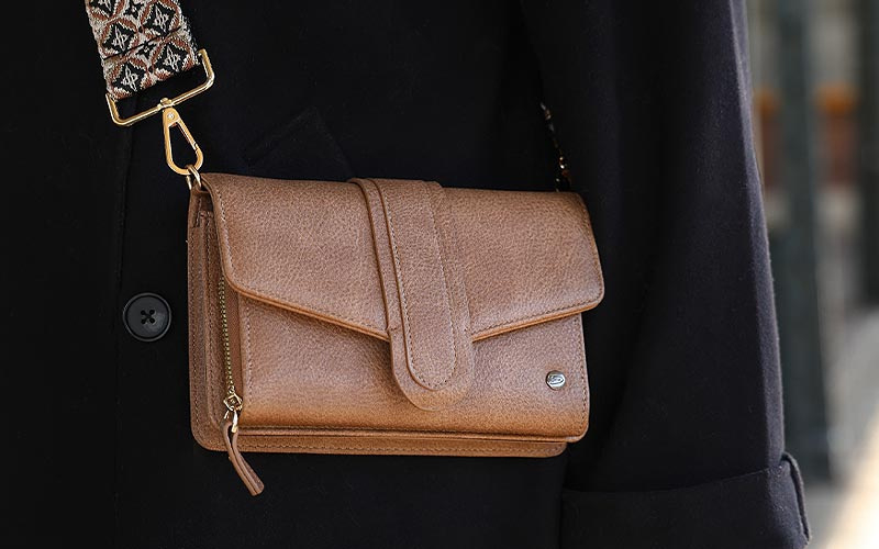 Artikelnummer: Wendy OverzichtWendy" is weer nieuw model portemonnee en telefoontasje. Wendy is een klein en fijn tasje voor het opbergen van je telefoon, pasjes, geld en andere waardevolle bezittingen. Deze portemonnee biedt bovendien ruimte voor elke telefoon. Je kunt je telefoon kwijt in één van de twee voorvakken onder de flap. Deze flap wordt met magneet afgesloten met een druk magneet. De portemonnee wordt geleverd met twee verschillende schouderbanden maar is ook als clutch de dragen . Dit portemonnee- / telefoontasje is gemaakt van veganistisch leer.