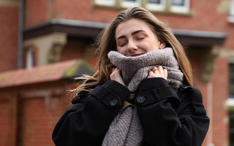 Dankzij dit slimme detail drapeer je deze royale sjaal moeiteloos, zonder een dikke, onhandige knoop.