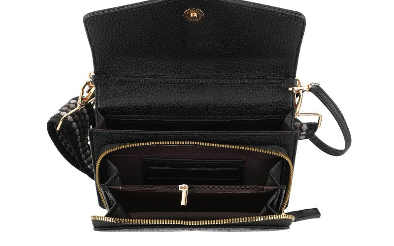 Tessa" is weer nieuw model portemonnee en telefoontasje. Tessa is een klein en fijn tasje voor het opbergen van je telefoon, pasjes, geld en andere waardevolle bezittingen. Deze portemonnee biedt bovendien ruimte voor elke telefoon. Je kunt je telefoon kwijt in één van de twee voorvakken onder de flap. Deze flap wordt met magneet afgesloten met een druk magneet. De portemonnee wordt geleverd met twee verschillende schouderbanden maar is ook als clutch de dragen . Dit portemonnee- / telefoontasje is gemaakt van veganistisch leer.